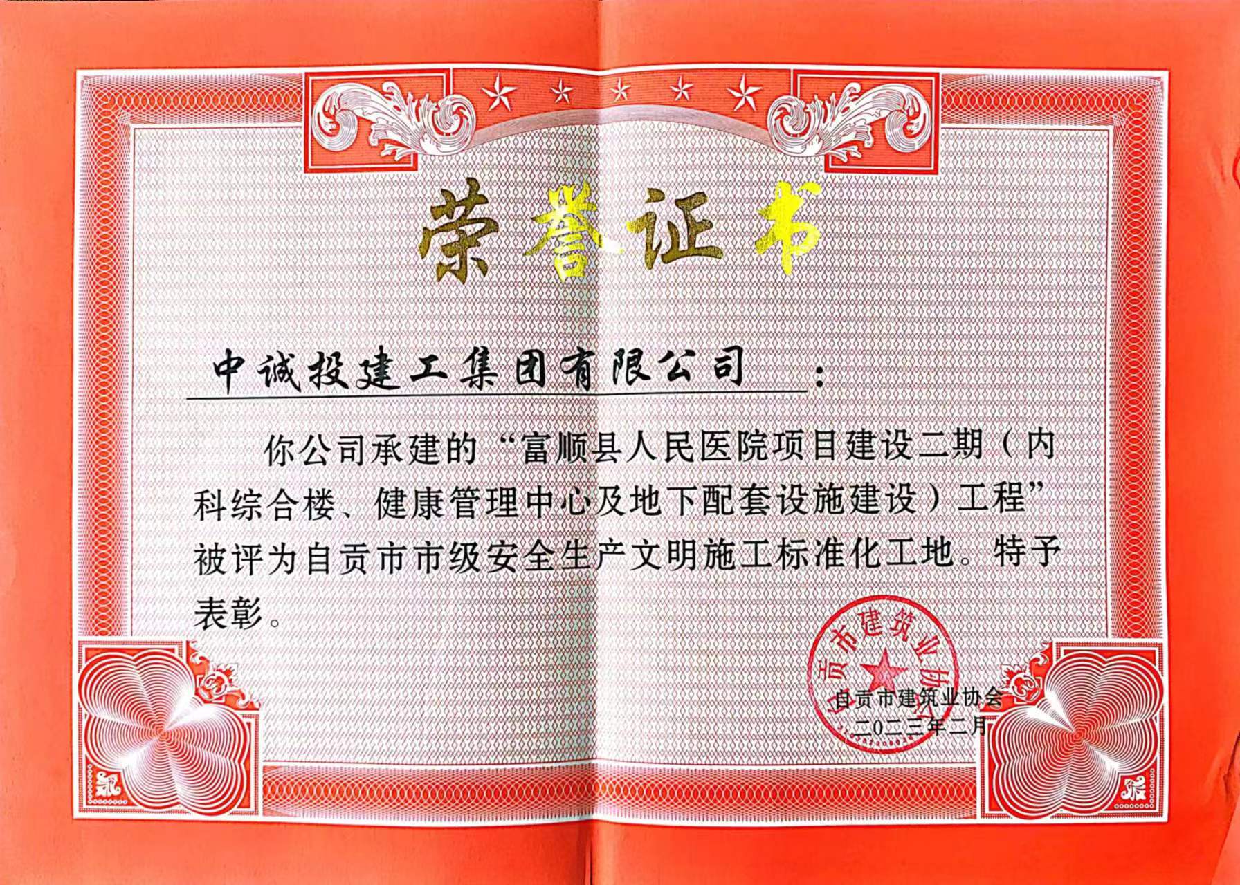 富順人民醫(yī)院項(xiàng)目獲“安全生產(chǎn)文明施工標(biāo)準(zhǔn)化工地”稱號(hào)